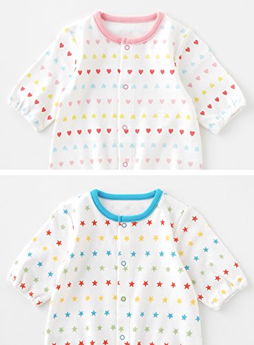 - カ ラ フ ル な プ リ ン ト 柄 に マ マ も に っ こ り ♪女の子らしいハート柄と、男の子にぴったりの星柄のベビーの愛らしさ引き立つ2色展開です毎日お着替えするものはシンプル可愛く揃えたいネ!出産お祝いのプレゼントにもおススメです