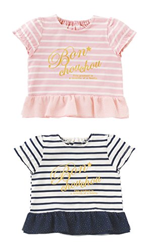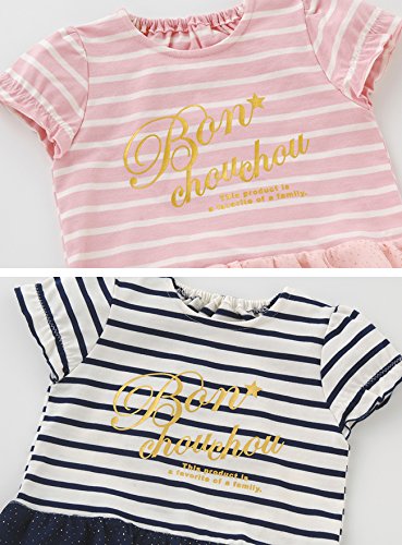 - 夏はやっぱりボーダーTシャツ! 夏は爽やかマリンスタイルを満喫しちゃおう! 女の子らしいピンクと、定番ネイビーの2色展開の夏Tシャツの登場。 女の子らしく裾にラメチュールとシフォンの 2枚重ねフリルを付けて可愛く仕上げました。 お気に入りのショートパンツとサンダルを合わせて元気にお出かけしよう!