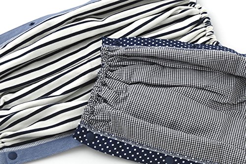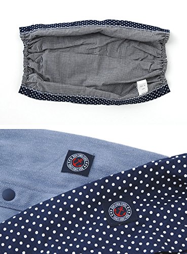 - ■素材■ デニムニット(水色) 表地:デニムニット 綿97%ポリウレタン3% 裏地:天竺 綿100% ドット(ネイビー) 表地・裏地:布帛 綿100%