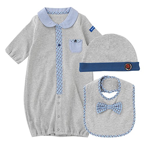 - プ チ セ レ モ ニ ー な ギ フ ト セ ッ トチェック柄の前立てがシンプルオシャレな新生児ツーウェイオールと帽子、スタイの3点セットですシンプルな装いだから退院やお披露目にもぴったりグレー、ホワイト、ネイビーの上品な3色展開で生まれたての男の子ベビーの出産お祝いに喜ばれます