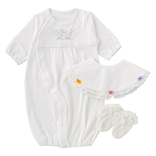 - 生 ま れ た て ベ ビ ー へ の お 祝 い セ ッ ト 新生児ベビーが初めて身に付ける新生児ツーウェイオールと レース使いが上品なよだれかけ、レース付き靴下の3点セットです ご自宅用はもちろん、出産お祝いのギフトとしてもおススメです! 退院時やお披露目の時などベビーのハレの日にぴったりの 白を基調とした新生児ウェアセットです