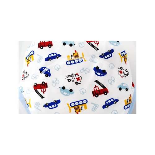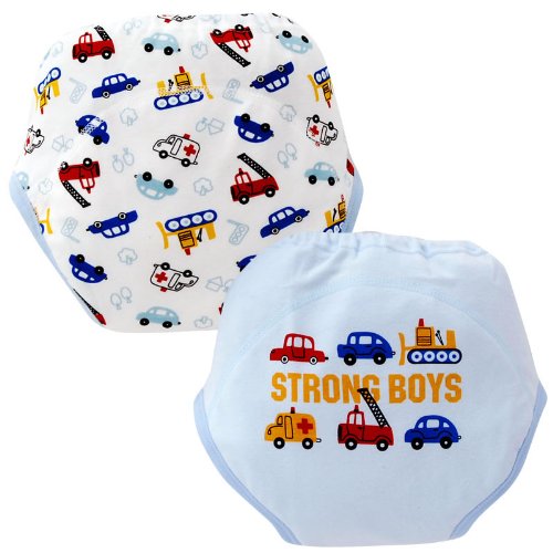 トイレトレーニングに慣れてきた子にオススメの3層タイプのトレーニングパンツ。ロゴと働くクルマをおしゃれにプリントしました★爽やかな水色生地もGOOD 洗い替えに嬉しい2枚組です。