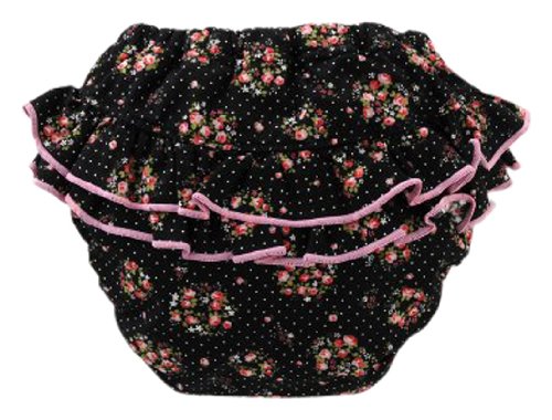 お花やドットが可愛く映える珍しいブラックのトレーニングパンツ たっぷり2段フリルで後姿もキュートに決まります!トイレトレーニング初期の子におススメな4層吊り式タイプのトレパンです。吊り式タイプだからお洗濯の乾きもGOOD!トレーニング卒業後は、吸水層パンツを切り外してブルマとしても使用OK! 素材・・身生地表)綿100%【日本製】