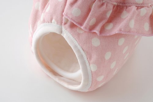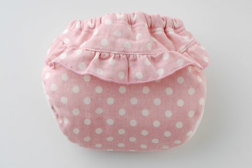 【こだわりの日本製】 表パンツと、吸水層付きパンツの足口はしっかり縁まきをしているので足にフィットし横モレを防止します! 女の子らしいナチュラル感のあるピンクに白のドットがキュートフリルを付けて可愛く仕上げました♪女の子ベビーが楽しくトイトレ出来るキュートなトレーニングパンツです♪素材・・身生地表)綿100%