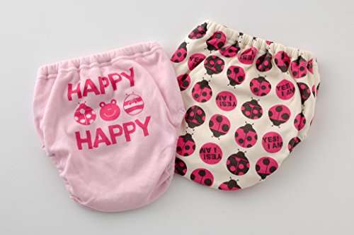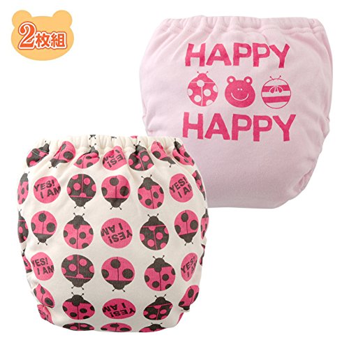 てんとう虫柄がキュートな4層吊り式トレーニングパンツ2枚組。4層構造で吸水力GOODお洗濯の乾きも早い吊り式です!トレーニングパンツは一般的に完全防水ではありません。おしっこの量が多い場合は漏れることがあります。■素材:身生地表 綿100%