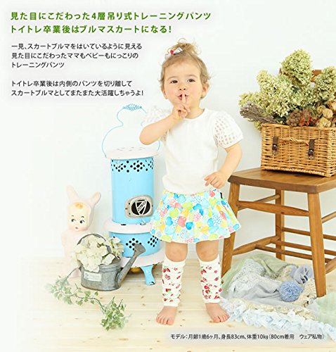 - ま る で ス カ ー ト ブ ル マ ! 楽 し く ト イ ト レ 始 め よ う まるでスカートブルマをはいているように見える見た目にこだわったとってもキュートな4層吊り式トレーニングパンツ女の子ベビーが喜ぶ可愛いフルーツ柄でトイレトレーニングのやる気もアップ!トイトレ卒業したら吸水層のパンツ部分を切り離してスカートブルマとして利用できる嬉しい工夫付きです!