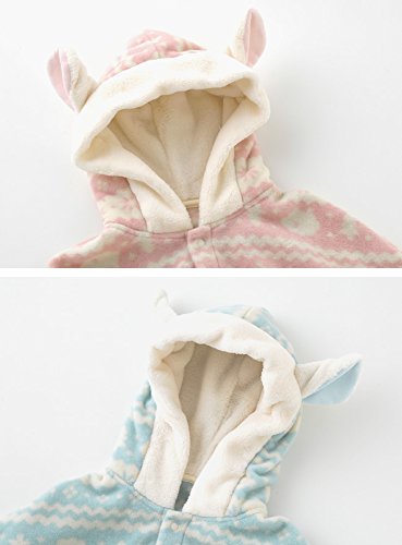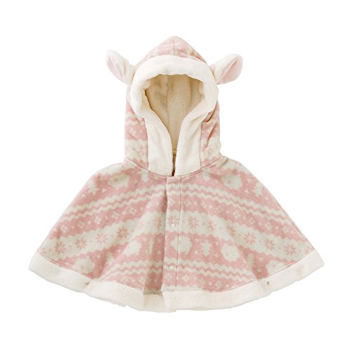 (チャックル) chuckle 北欧風 プリント くま耳 フード付き フリースマント ピンク 60-90cm P5404-00-20