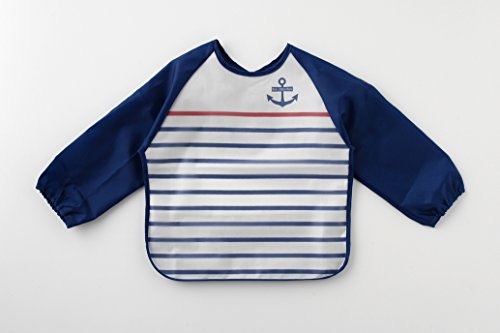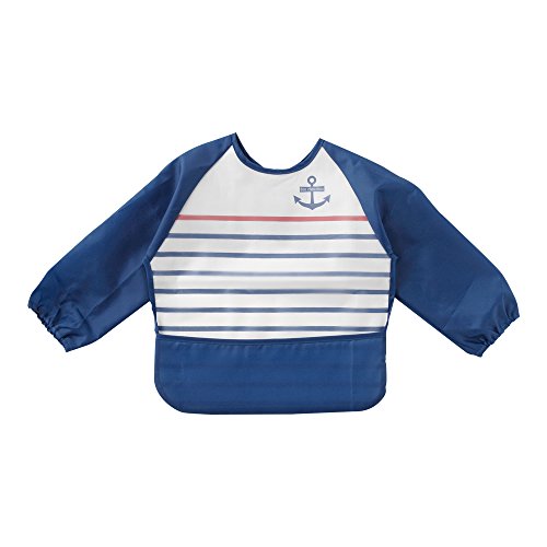 (チャックル) chuckle *ボンシュシュ*裾ポケット付き!マリンボーダー長袖食事用エプロン【マジック式】【食事用スタイ】 ブルー サイズなし P8120-00-31