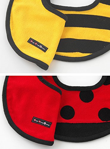 - ベ ビ ー の 可 愛 さ 引 き 立 つ ! な り き り ス タ イ みつばち、てんとう虫、カエルをモチーフにしたスタイと シンプルなワンポイント付きのスタイ2枚組の登場!