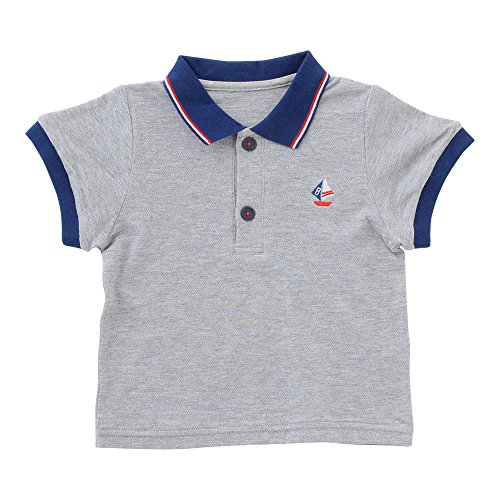 - パ パ み た い な ポ ロ シ ャ ツ で オ シ ャ レ ベ ビ ー に 変 身 ! 大人顔負けのオシャレなポロシャツは夏のマストアイテム! ボトムスとの相性もバッチリで、お出かけにぴったり! 胸元にはヨット柄の刺繍を入れて可愛く仕上げました シンプルなグレーと夏らしいネイビーの2色展開です