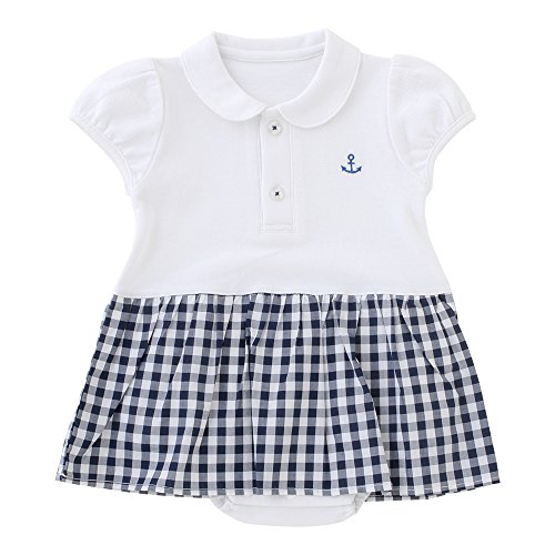 - お て ん ば ガ ー ル の 夏 お 出 か け ロ ン パ ー ス オシャレなポロシャツ風のロンパースに ギンガムチェックのスカートを縫いつけた半袖ロンパースです スカートがチラッとめくれてもOK! おてんばガールにぴったりの1着です 爽やかなホワイトとオシャレなグレーの2色展開です