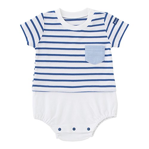 (チャックル) chuckle *ボンシュシュ*ボーダー半袖ロンパース ブルー 70cm P2191-70-31