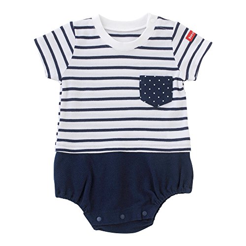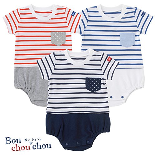 (チャックル) chuckle *ボンシュシュ*ボーダー半袖ロンパース ネイビー 80cm P2191-80-32