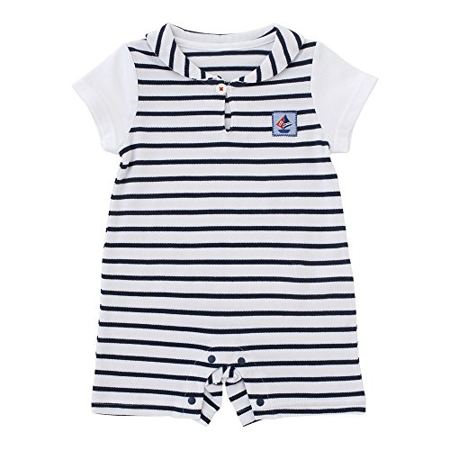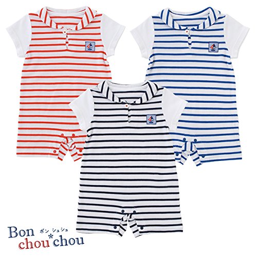 (チャックル) chuckle *ボンシュシュ*ボーダーショート丈半袖カバーオール ネイビー 60cm P2528-60-32