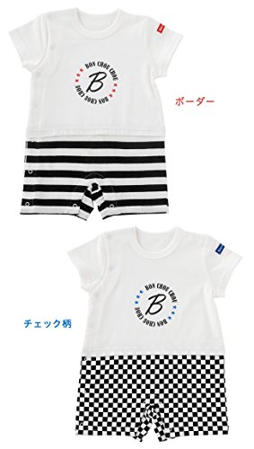 まるで上下を着ているように見える ロゴがカッコいい半袖ショート丈カバーオール。