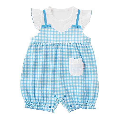 (チャックル) chuckle スウィートガール*ギンガムチェック重ね着風フリル袖カバーオール 水色 70cm P2462-70-30