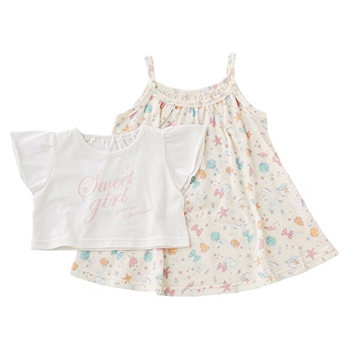 (チャックル) chuckle *スウィートガール*フレア袖Tシャツ&シェル柄キャミワンピースセット クリーム 70cm P3251-70-40