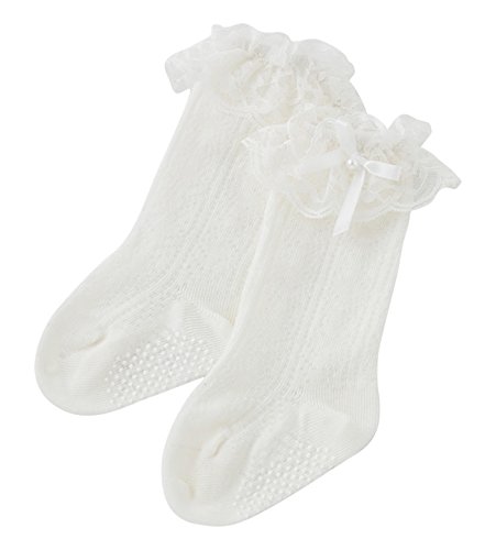 (チャックル) chuckle *ピュアホワイト*レースリボン付きハイソックス【9-12cm、12-15cm】 ホワイト 9-12cm P9318-12-10