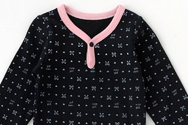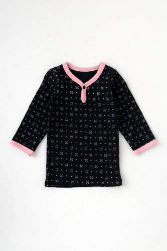- 大人っぽい黒のロンパースにピンクの縁まきをあしらった甘辛テイストの長袖シャツ インナーやお部屋着に大活躍です♪首元にスナップが付いているから首回りが大きく開き、着脱も簡単♪
