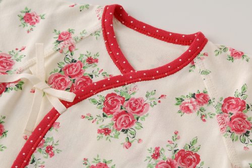 - 大きめの上品な花柄が印象的な新生児肌着セットドット柄の縁まきでキュートさをプラスしました♪
