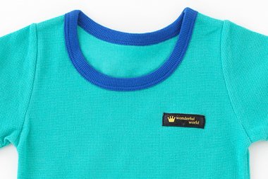 凹凸のある爽やか素材を使用したシンプルなインナー半袖シャツ!保育園の必須アイテムのインナーシャツは可愛く揃えたいね!■素材:鹿の子フライス 綿100%