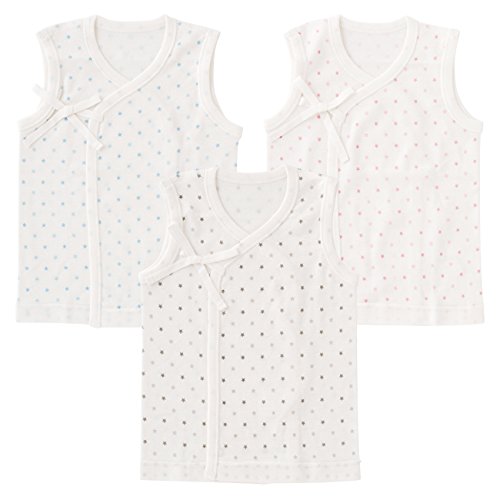 - 新 生 児 ベ ビ ー が 初 め て 身 に つ け る 短 肌 着生まれたてベビーを優しく包む星柄の短肌着通気性の良い通年素材を使用した出産準備や産後の買い足しに便利な1枚売りです袖なしタイプなので夏生まれベビーにおススメアウターから袖が出ないので重宝します