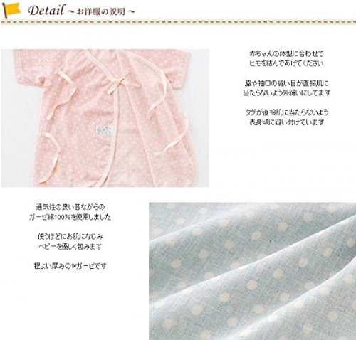 日本工場(島根県益田市)で熟練のスタッフが心をこめて作り上げた*WAFU(わふ)*シリーズの水玉が可愛いコンビ肌着です。昔ながらの赤ちゃんの肌に優しいガーゼ綿100%を使用しました。■素材:ガーゼ 綿100%■1枚売りです