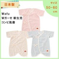ニシキ WAFU-N8031 Wafu 日本製 Wガーゼ新生児 コンビ肌着 50-60cm サックス・WAFU-N8031S