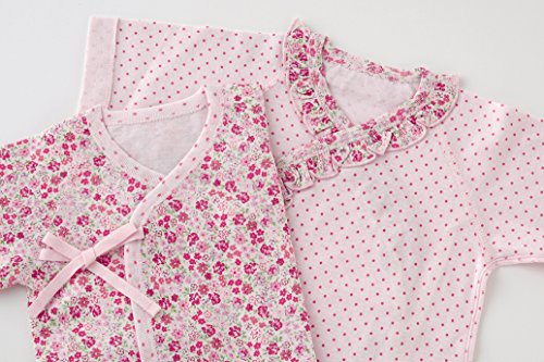 自慢したくなる!小花柄&ドットが可愛い新生児肌着セットです。通気性の良い通年素材のフライスを使用。毎日のお着替えが楽しくなる可愛さで出産お祝いのプレゼントにもおススメです ■素材:フライス 綿100%