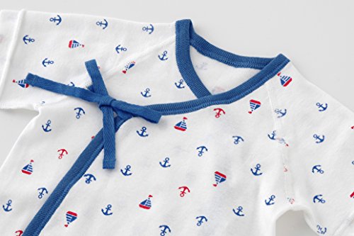 マリン柄が爽やかな新生児コンビ肌着&短肌着のセットです。通年素材のフライス綿100%を使用しました。毎日のお着替えが楽しくなる可愛さで出産お祝いのプレゼントにもおススメです ■素材:フライス 綿100%