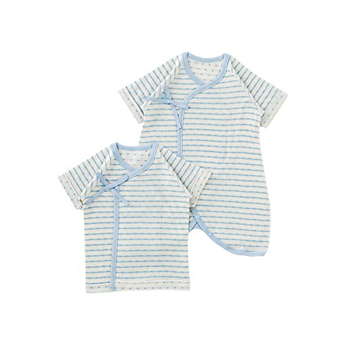 - ふ ん わ り ベ ビ ー を 包 み 込 む 新 生 児 肌 着 セ ッ ト 優しい雰囲気のボーダーが可愛い新生児コンビ肌着と 新生児短肌着の3枚組です
