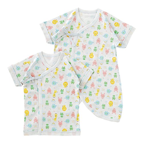 - 新 生 児 ベ ビ ー を 優 し く 包 む 可 愛 い 肌 着 セ ッ ト ころころとしたカラフルなどうぶつさんがキュートな 新生児コンビ肌着と新生児短肌着の2枚組です