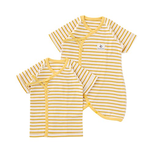 ( チャックル ) chuckle * ボンシュシュ * ボーダー 新生児 コンビ肌着 & 短肌着 2枚組 イエロー 50-60cm P6025-00-41
