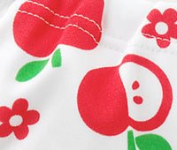 ベビーのための水遊び用おむつパンツ!真っ赤なリンゴ柄がキュートです パンツは二重股立体ギャザーだから体にフィットしてとっさのウンチも安心※注意※尿やゆるめのウンチの流れ出しは、完全に防ぐことはできません。ベビーのお肌に優しい防水素材を使用し、繰り返し洗って使用できるから経済的です水を吸っても膨らんだり重くなったりせず赤ちゃんも楽しく水遊びが出来ます ■素材・・ポリエステル100%裏生地防水フィルムラミネート加工(パンツのみ)