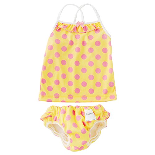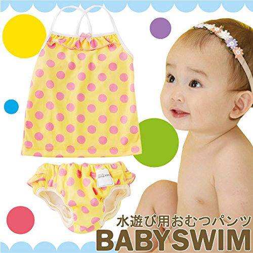 ベビーのための水遊び用おむつパンツ!フリル付き水遊びパンツとキャミソールのセットです。パンツは二重股立体ギャザーだから体にフィットしてとっさのウンチも安心。ベビーのお肌に優しい防水素材を使用し、繰り返し洗って使用できるから経済的です。水を吸っても膨らんだり重くなったりせず赤ちゃんも楽しく水遊びが出来ます■素材ポリエステル100%裏生地防水フィルムラミネート加工(パンツのみ)■日本製※注意※尿やゆるめのウンチの流れ出しは、完全に防ぐことはできません。