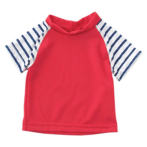 (チャックル) chuckle ハイネックボーダー半袖ラッシュガード レッド 90cm M8553-90-21