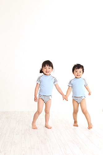保育園やベビースイミングでおなじみの水遊び用おむつパンツ(スイムパンツ)に 伸縮性抜群な、お揃いのラッシュガード新登場☆ ベビーのお肌を日焼けや冷えから守るベビー用ラッシュガード。 首回りも包むハイネックのTシャツタイプの半袖ラッシュガードで、前開きのファスナー等がないので お腹への負担がありません。 胴部・背部・首回りは新素材「デュアルマジック」を使用! 通気性がよく、生地表面は撥水、裏面は吸水機能があり生地の濡れ感やプール上がりの冷え感を軽減します! ★サイズ 80-90cm(総丈-34cm、身幅-26cm) ★素材 無地:ポリエステル90%綿10% 袖:ポリエステル100% ★日本製