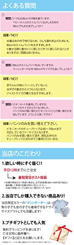 お肌にやさしい防水素材でできた、赤ちゃん用の水遊び用おむつパンツと伸縮性抜群な、お揃いのラッシュガードのセット☆ 使い捨ての紙製スイムパンツとは違い、繰り返し洗って使えるので経済的かつエコ! 二重股立体ギャザーなので、体にフィットしてとっさのウンチ(固形)も安心です。 ※使用上の注意※ ・尿やゆるめのウンチの流れ出しは完全に防げません。 ・吸水層は付いていませんので水遊びパンツが水分や尿を吸水することはできません。おむつカバーとしてご使用されたいときは必ず布おむつをご併用ください。 首回りも包むハイネックのTシャツタイプの半袖ラッシュガードは、前開きのファスナー等がないので お腹への負担がありません。 胴部・背部・首回りは新素材「デュアルマジック」を使用! 通気性がよく、生地表面は撥水、裏面は吸水機能があり生地の濡れ感やプール上がりの冷え感を軽減します! ★セット内容:80cm→スイムパンツ80㎝+ラッシュガード80-90cm、90cm→スイムパンツ90㎝+ラッシュガード80-90cm、100cm→スイムパンツ100㎝+ラッシュガード95-100cm ★サイズ:パンツ 80cm(ウエスト34~44cm、もも周り25~30cm)、90cm(ウエスト36~46cm、もも周り26~31cm)、100cm(ウエスト40~50cm、もも周り27~32cm) 、ラッシュ:80-90cm(総丈-34cm、身幅-26cm)、95-100cm(総丈-36cm、身幅-28cm) ★素材:パンツ ポリエステル100%(裏生地防水フィルムラミネート加工)、ラッシュ:無地:ポリエステル90%綿10% 袖:ポリエステル100% ★日本製