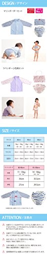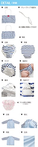 お肌にやさしい防水素材でできた、赤ちゃん用の水遊び用おむつパンツと伸縮性抜群な、お揃いのラッシュガードのセット☆ 使い捨ての紙製スイムパンツとは違い、繰り返し洗って使えるので経済的かつエコ! 二重股立体ギャザーなので、体にフィットしてとっさのウンチ(固形)も安心です。 ※使用上の注意※ ・尿やゆるめのウンチの流れ出しは完全に防げません。 ・吸水層は付いていませんので水遊びパンツが水分や尿を吸水することはできません。おむつカバーとしてご使用されたいときは必ず布おむつをご併用ください。 長袖ラッシュガードの 胴部・背部・首回りは新素材「デュアルマジック」を使用! 通気性がよく、生地表面は撥水、裏面は吸水機能があり生地の濡れ感やプール上がりの冷え感を軽減します! ★セット内容:80cm→ビキニ80㎝+ラッシュガード80-90cm、90cm→ビキニ90㎝+ラッシュガード80-90cm、100cm→ビキニ100㎝+ラッシュガード95-100cm ★サイズ:ビキニ(パンツ) 80cm(ウエスト34~44cm、もも周り25~30cm)、90cm(ウエスト36~46cm、もも周り26~31cm)、100cm(ウエスト40~50cm、もも周り27~32cm) 、ラッシュ:80-90cm 着丈: 34cm 身幅: 27cm 裄丈(後首中心~袖口まで): 36.5cm 95-100cm 着丈: 35.5cm 身幅: 29.5cm 裄丈(後首中心~袖口まで): 39.5cm ★素材:パンツ ポリエステル100%(裏生地防水フィルムラミネート加工)、ラッシュ:無地:ポリエステル90%綿10% 袖:ポリエステル100% ★日本製
