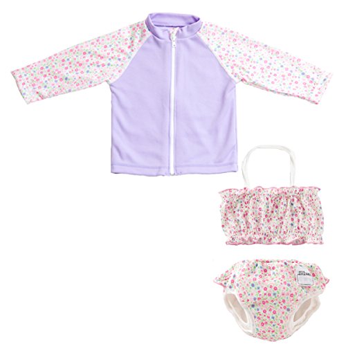 ベビー 水着 ビキニ+長袖ラッシュガードセット 女の子 (80cm,90cm,100cm) (80cm, 小花柄セット)