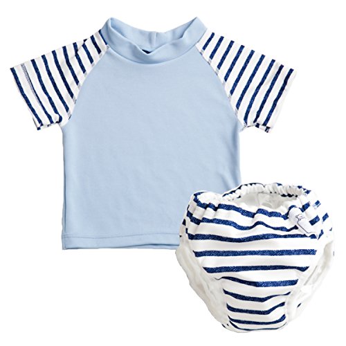 ベビー スイムパンツ+半袖ラッシュガードセット ハイネック 男の子 女の子 ベビー 水着 (80cm,90cm,100cm) (90cm, マリンボーダーセット)