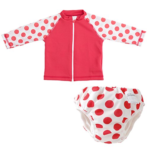 ベビー 水遊びパンツ+長袖ラッシュガードセット 男の子 女の子 ベビー 水着 (80cm,90cm,100cm) (80cm, レッド水玉柄セット)