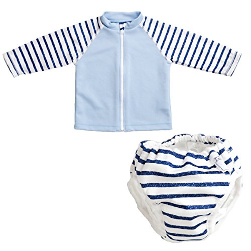 ベビー 水遊びパンツ+長袖ラッシュガードセット 男の子 女の子 ベビー 水着 (80cm,90cm,100cm) (100cm, マリンボーダーセット)