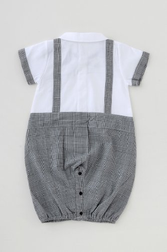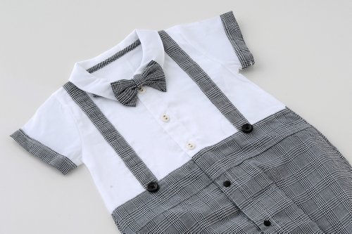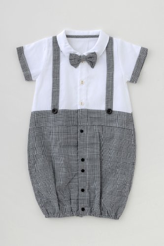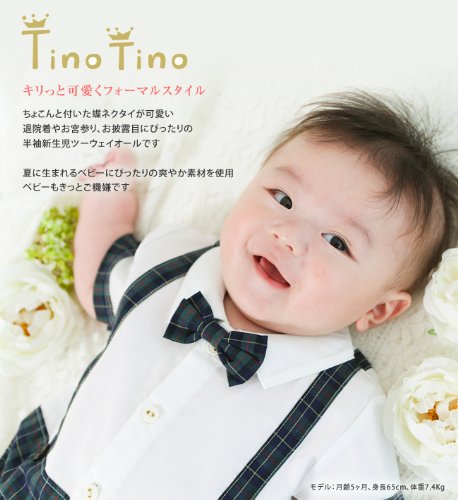 【ベビーのためのフォーマルウェア】蝶ネクタイがとってもキュートな夏に生まれるベビーにぴったりのフォーマル新生児半袖ツーウェイオールです。爽やかな素材を使用し、夏の退院やお披露目、お宮参りにぴったりの1着です。■素材:綿100%