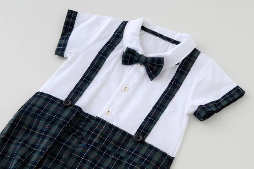 【ベビーのためのフォーマルウェア】蝶ネクタイがとってもキュートな夏に生まれるベビーにぴったりのフォーマル新生児半袖ツーウェイオールです。爽やかな素材を使用し、夏の退院やお披露目、お宮参りにぴったりの1着です。■素材:綿100%