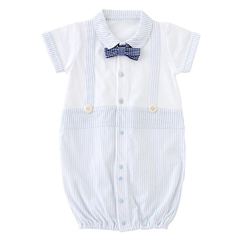 - キリっとオシャレなフォーマルスタイル☆蝶ネクタイがとってもキュートな夏に生まれるベビーにぴったりのフォーマル新生児半袖ツーウェイオールです。爽やかなストライプ柄で夏の退院やお披露目、お宮参りにぴったりの1着です。