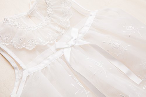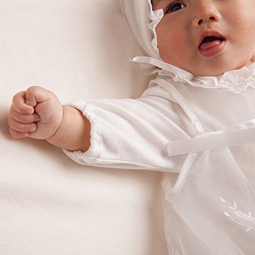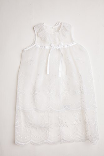 お宮参り、退院着、お披露目にピッタリな純白のセレモニードレス。 着脱簡単!オーガンジーに美しい刺繍をあしらった 上品レースのオーバードレスに、デイリー使いもOKなスムース生地の2Wayオール。 そして、ドレスとおそろいのオーガンジー&レースで仕上げたエレガントなベビーフード。 出産祝いのプレゼントにもどうぞ! ■オーバードレス サイズ:総丈62cm、身幅30cm ヨーク部分:縁まき:綿100% スカート部レース生地:ナイロン100%、刺繍糸:ポリエステル100% 衿廻り生地:ポリエステル100% 刺繍糸表:レーヨン100%、裏綿:100% ■2Wayオール(兼用ドレス) サイズ:総丈50cm 身幅-28cm 本体:綿100% ■帽子 サイズ:42~44cm 本体:綿100% 表面レース:ナイロン100%、刺繍糸:ポリエステル100% 縁レース:ポリエステル100% 刺繍糸表:レーヨン100%、裏綿:100%