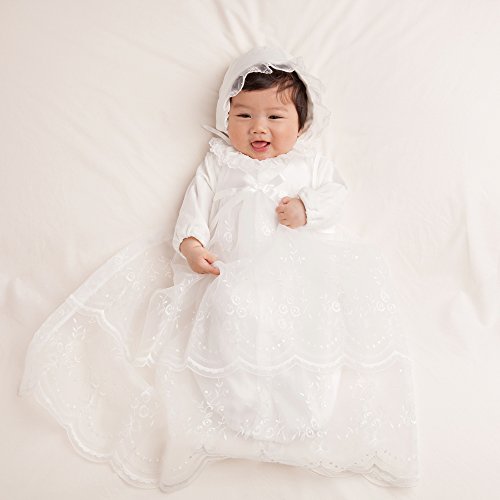 - お宮参りにピッタリな、上品で華やかなセレモニードレスの3点セット。(ドレスオール1点、オーバードレス1点、帽子1点)