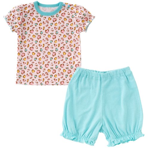 ≪ChukleBABY ルームウェア Collection≫可愛いハート型ヒョウ柄半袖Tシャツとハーフパンツのセットです。デイリーのルームウェアとしておススメ☆シャツとズボンがボタンで留めれるから裾めくれも防止出来てパジャマとしても大活躍!単品使いをしてもOKな可愛いアイテムです。■素材:フライス 綿100%