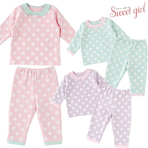 マカロンカラーのドットがキュートな長袖Tシャツとパンツのセットです。デイリーのルームウェアとしておススメ☆シャツとズボンがボタンで留めれるから裾めくれも防止出来てパジャマとしても大活躍!単品使いをしてもOKな可愛いアイテムです。■素材■トップス・ボトムス本体:裏起毛 綿95%ポリウレタン5% 襟部分・袖口リブ・足口リブ:綿100%